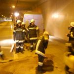 Da der Tunnel bereits gesperrt war, kümmerten wir uns um das Binden von Öl sowie die Reinigung der Fahrbahn bzw. des Pannenstreifens.