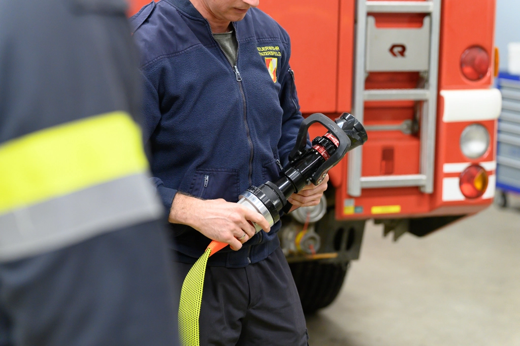 Kommandantstellvertreter Daniel Musil rüstete sich im Anschluss komplett aus. Darunter fallen die persönliche Schutzausrüstung (PSA – Stiefel, Hose, Jacke, Branddiensthandschuhe, Helm). Speziell für den Atemschutzeinsatz kommen eine Atemschutzmaske, eine Flammschutzhaube sowie das Atemschutzgerät selbst hinzu.