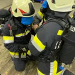 Zur monatlichen Übung trafen wir uns diesmal um die im Ernstfall lebenswichtige Kurzüberprüfung der Atemschutzgeräte, das Umkuppeln und Fremdversorgen eines Kameraden mit dem eigenen Gerät, das taktische Vorgehen, den Türcheck sowie die Personensuche zu wiederholen. Um eine realistische Situation nachzustellen, wurde den zwei Geräteträgern eine Sichtmaske angelegt – bei eingeschaltetem Licht erscheint hier die Umgebung durchwegs grau.