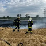 Aus unbekannten Gründen kam es auf einem bereits abgedroschenen Feld zu einem Flurbrand. Da sich die Fläche immer weiter ausbreitete, entschied man sich gemeinsam mit der Freiwilligen Feuerwehr Königsbrunn für einen Angriff von zwei Seiten.