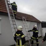Um 13:40 Uhr wurden wir mittels Sirene und Blaulicht SMS zu einem Kaminbrand alarmiert. Umgehend machte sich die Mannschaft mit dem RLFA und dem LF auf den Weg zur Einsatzstelle, welche nur wenige meter neben dem Feuerwehrhaus lag. Bei der Erkundung wurde festgestellt das die Unterdachkonstruktion bei der Kamindurchführung zu glosen begann, der Hausbewohner hatte beim nachsehen selbst schon Dämmmaterial vom Kamin entfernt. Wir konnten die Umgebung des Kamins mit der Kübelspritze abkühlen, und kontrollierten den Erfolg der Maßnahmen mit der Wärmebildkamera. Von der Außenseite des Daches entfernten wir die Dacheindeckung um auch von außen Kühlmaßnahmen durchführen zu können. Die Kühlung zeigte rasch Wirkung und es konnte keine weitere Brandgefahr festgestellt werden. Danach verschlossen wir die Dachöffnung und konnten nach ca. 45 Minuten wieder einrücken.