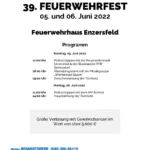 Begonnen wird am Sonntag, den 05. Juni mit einem Frühschoppen durch die Feuerwehrmusik Enzersfeld, die heuer gemeinsam mit der Blaskapelle FFW Bertelsdorf aufspielen wird.