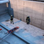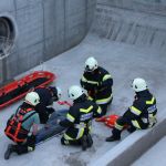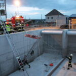 Begonnen wurde mit einer kurzen Theorieeinschulung zum Thema Knoten. Anschließend fuhren wir mit unseren Fahrzeugen zur Kläranlage in Enzersfeld, wo die Übungsannahme eine abgestürtzte Person, die gerettet werden musste, war.