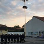 Durch die hohen Sturmböhen kam es bei dem Maibaumgestell zu einem Riss in der Schweißnaht. Einem unserer aufmerksamen Kameraden fiel der schiefstehende Baum jedoch rechtzeitig auf, sodass es zu keinem Zwischenfall kam.