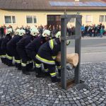 Gestartet wurde beim Gasthaus Hofbauer gegen 19:00 Uhr gemeinsam mit der Feuerwehrmusik Enzersfeld in Richtung Dorfplatz, wo der Baum anschließend aufgestellt wurde und feierlich an den Bürgermeister übergeben wurde.