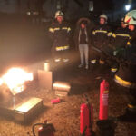 Im Anschluss hatte er hinter dem Feuerwehrhaus eine Vielzahl an unterschiedlichen Feuerlöschern aufgebaut, die wir im Zuge der Übung durchbesprachen und ebenfalls ausprobierten.