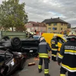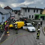 Die Fahrerin eines Kleintransporters krachte in ein parkendes Auto, wurde dabei aus dem Fahrzeug geschleudert und kam auf der Motorhaube – teilweise in der Windschutzscheibe steckend – zum Liegen. Erschwerend kam hinzu, dass zwischen den beiden Fahrzeugen eine Person eingeklemmt wurde.