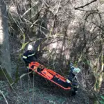 Anschließend wurde der Verletzte mittels Korbschleiftrage zurück zum Fahrzeug gebracht. Der Abstieg stellte sich aufgrund der unwegsamen Gegebenheiten im Wald als äußerst herausfordernd und schweißtreibend heraus!