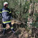 Unter anhaltendem Funkverkehr wurde laufend Ausrüstung an die Unglücksstelle gebracht. Da der Radfahrer in einem Graben zum Liegen kam, musste sich die Mannschaft an einem Baum gegensichern.