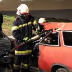 Die Übung fand unter dem Thema „Stromerzeuger und hydraulisches Rettungsgerät“ statt. Ziel war es, eine eingeklemmte Person aus einem Unfall – Fahrzeug zu retten. Hierbei kam unser hydraulischer Rettungssatz mit Schere, Spreitzer und Stempel zum Einsatz. Nachdem die linke Seitenwand entfernt wurde, befreiten wir das Opfer und brachten es mit Hilfe der Schaufeltrage in Sicherheit.