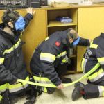 Zusätzlich übten wir die Suchmethoden mit Atemschutzmasken in einem weiteren Raum des Feuerwehrhauses.