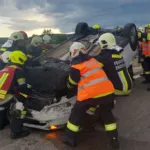 Bereits bei der Anfahrt bemerkten wir das verunfallte Fahrzeug in der Abfahrt Hagenbrunn am Dach liegend. Ebenso war bereits die Feuerwehr Königsbrunn an der Unfallstelle.