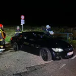 An der Unfallstelle fanden wir einen BMW vor, der mit beiden Unterbodenschwellern auf einer Starkregeneinrichtung (hoher Fahrbahnschweller) aufgesessen war.