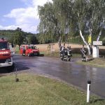 Um ca. 22.00 Uhr wurde die Feuerwehr Enzersfeld nach einem kurzen aber heftigen Regenschauer zu einem unter Wasser stehenden Heurigenlokal in der Kellergasse gerufen. Es rückten 4 Mann mit dem RLFA zum Einsatz aus. Vor Ort angekommen stellte sich bei der Erkundung heraus, das lediglich Regenwasser vom über dem Lokal befindlichen Weingarten über die Dampfröhre eindrang. Die Einsatzkräfte legten im Weingarten Ablaufgräben an um ein weiteres Eindringen von Wasser zu verhindern. Nach 45 Minuten konnten die Feuerwehrkräfte wieder einrücken.