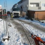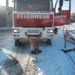 Gegen 09:00 Uhr wurden wir vom Königsbrunner Feuerwehrkommandanten verständigt, dass auf einer Baustelle auf der Enzersfelder Straße ein Sattelschlepper eingesunken ist und sich aus eigener Kraft nicht mehr auf die Straße bewegen konnte. Nachdem wir die Reifen des LKWs untergraben hatten, zogen wir den Schwertransporter mit der Seilwinde unseres RLFAs zurück auf die Straße.