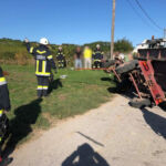 Beim Abfahren der Strecke stellte sich heraus, dass es bei Lesearbeiten in der Satzkellergasse zu einem Unfall gekommen ist. Durch die ungünstige Kombination aus Schräglage, hohem Schwerpunkt und starkem Lenkeinschlag kippte ein Traktoranhänger samt Weintrauben um.