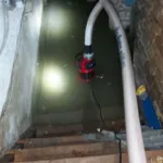 Anschließend wurde der Keller, der zu diesem Zeitpunkt ca. 30cm unter Wasser stand, ausgepumpt.