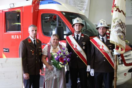 (v.l.n.r.: Kommandant Eichberger Christof, Fahrzeugpatin Zwanzinger Susanne, Eichberger Roman, Reichmann René)