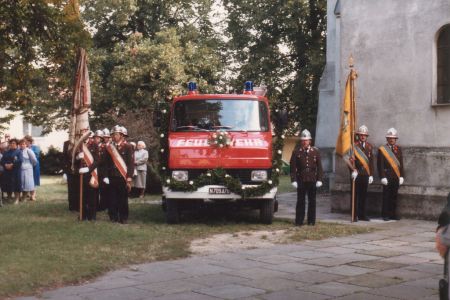 1985 – Die Ausrüstung wurde um 3 Atemschutzgeräte erweitert. Am 3. Oktober wurde das neue Feuerwehrauto geliefert.