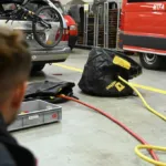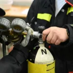 Sachbearbeiter für Atemschutz HLM Philip THANN erklärte zu Beginn theoretisch die verschiedenen Hebekissen. Anschließend wurde an einem Übungs-Fahrzeug in der Fahrzeughalle der Einsatz der Ausrüstung geübt. Es wurde auf die jeweils benötigten Gegenstände wie Steuereinheit, Schläuche (verschiedene Farben) und die unterschiedlichen Hebekissen, die bis zu 17 Tonnen heben können.