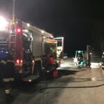 Bei dieser sehr gut besuchten Übung drehte sich alles um einen Verkehrsunfall zwischen einem VW Bus und einem Gabelstapler. Aus ungeklärter Ursache schoben sich die Gabeln des Staplers in das Führerhaus der Transporters und klemmten den Beifahrer beidseitig ein. Hinzu kam, dass es aus dem Laderaum rauchte und ein ca. 500l Tank darin stand. Der Gruppenkommandant teilte die Mannschaften, welche auf zwei Autos aufgeteilt waren, in verschiedene Trupps ein. Sofort nach Eintreffen wurde die Lichtversorgung, die Straßenabsicherung, der Brandschutz und der hydraulische Rettungssatz bereitgestellt. Nach kurzer Zeit konnte bereits das Feuer gelöscht werden, sodass weitere Kameraden für die Menschenrettung zur Verfügung standen.