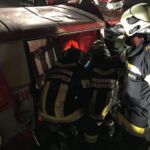 Als sich die Mannschaft dem 500l Tank im Laderaum widmete, wurde festgestellt, dass sich eine weitere Person und ein Kind in dem Auto befinden. Durch den Zusammenstoß wurden beide Personen von dem Tank eingeklemmt, sodass wir durch Hinzunahme eines Gurtes zuerst das Behältnis sicherten und gleichzeitig mit dem hydraulischen Rettungssatz die Schiebetüre entfernten.