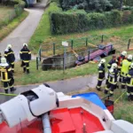 Da das Fahrzeug auf der Seite zum Stehen kam, musste es zuvor mit Spanngurten gesichert werden. Diese Aufgabe wurde umgehend durchgeführt, sodass rasch mit der Personenrettung mittels Spineboard begonnen werden konnte.